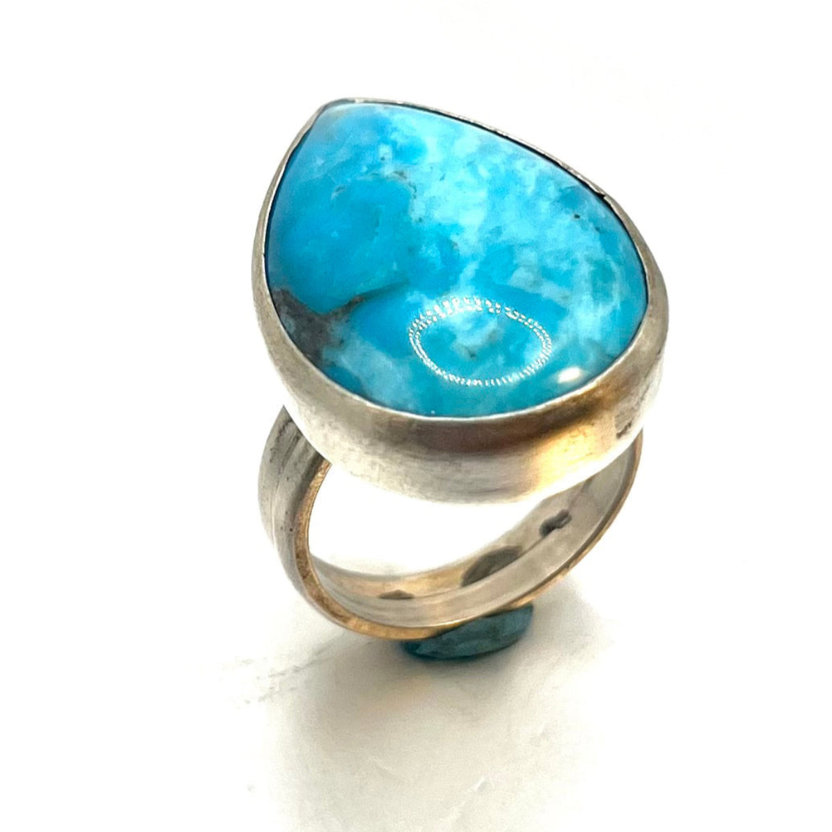 Sterling Silver Inlay Cabochon Ring with Turquoise and Micarta II