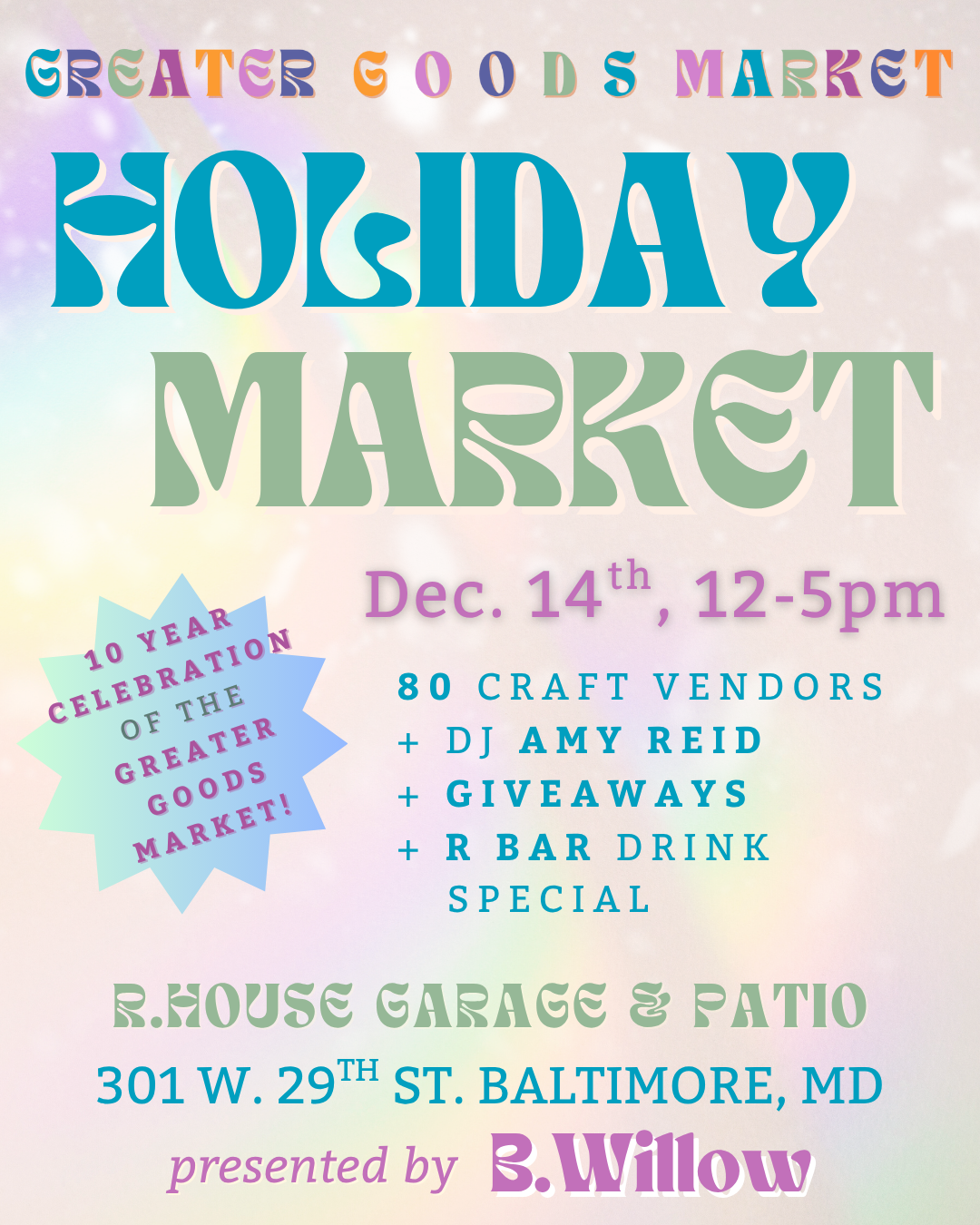 Join us at R.House in Remington for the Greater Goods Holiday Market, featuring 90 incredibly talented Baltimore artists and small businesses.