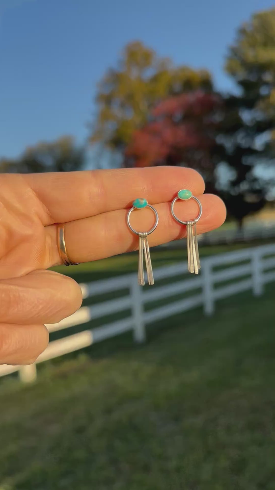 Fringe Sterling Silver Turquoise Earrings – Handmade Statement Studs with Movement and Elegance