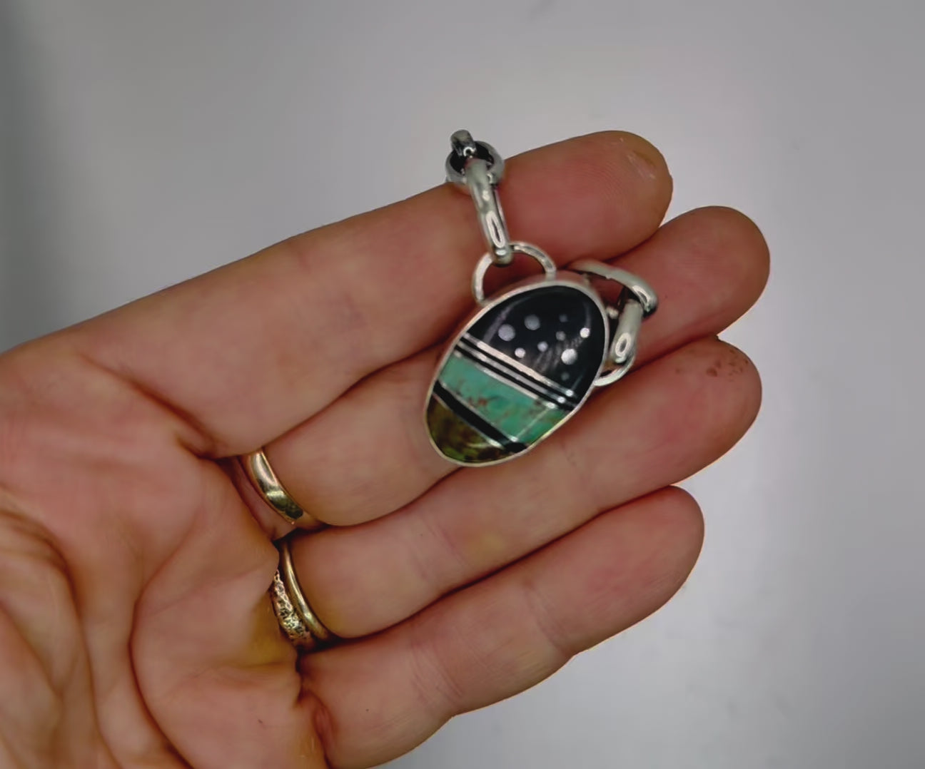 Turquoise Inlay Night Sky Necklace – Handmade Sterling Silver with Kingman Turquoise and Micarta